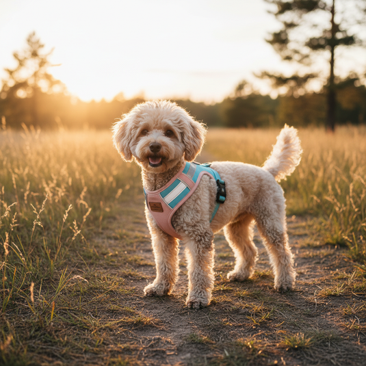 Holdt hunden din trygg, komfortabel og stilig med denne justerbare og pustbare hundeselen. Perfekt for turer, dette settet inkluderer en polstret vest og matchende bånd, og tilbyr både sikkerhet og bekvemmelighet for deg og kjæledyret ditt.